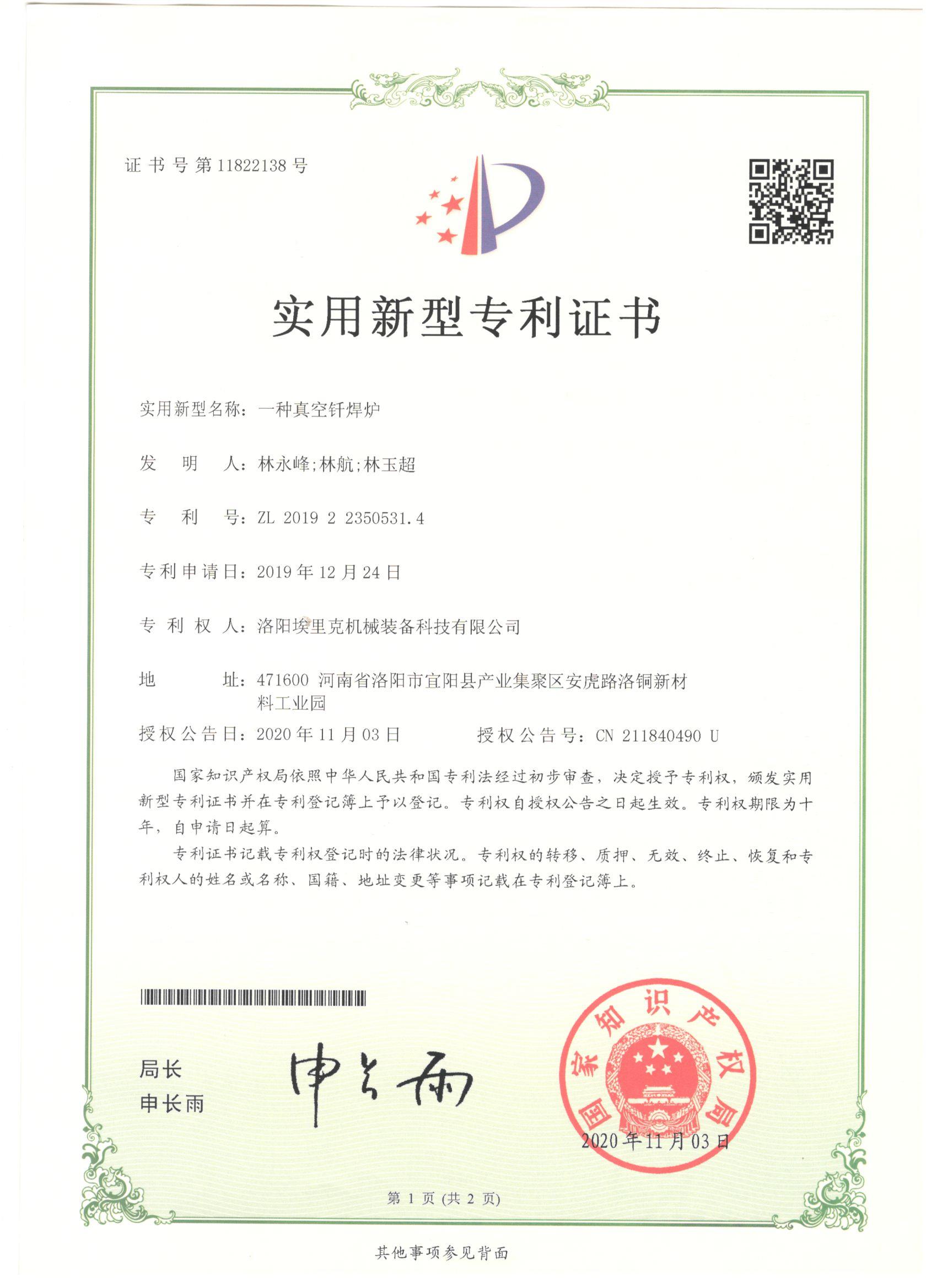 產(chǎn)品專利證書